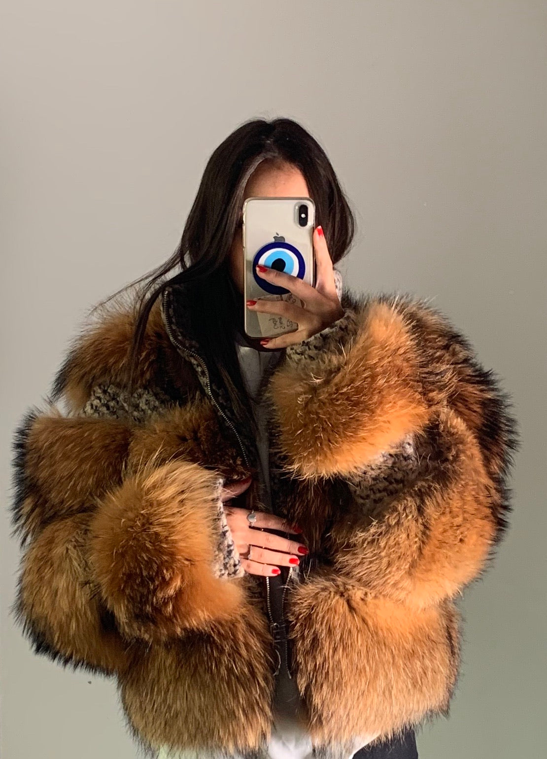 Description : La Raccoon Maille Coat en véritable fourrure de raton laveur allie luxe et confort. Avec sa coupe moderne et sa longueur de 56 cm, ce manteau court vous offre une chaleur optimale tout en restant léger. Conçu avec une fermeture éclair pratique, il permet une fermeture facile et sécurisée. Ses deux poches latérales ajoutent une touche de praticité tout en renforçant son look élégant.